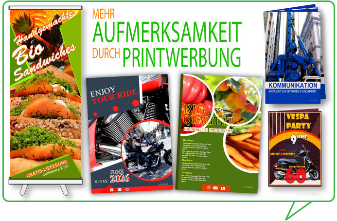 PRINTDESIGN ist die visuelle Gestaltung sämtlicher Print-Produkte wie Flyer, Folder, Plakate, Kataloge & Co. Es ist ein Werkzeug zur Schaffung von Aumerksamkeit, um den Werbeeffekt zu maximieren.
